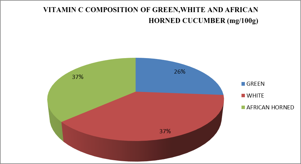275.07±44.23 mg/100g (Table 3).There was a little significant difference in vitamin C content between species. However, there was more vitamin C in African horned (275.07±44.23 mg/100g) and white Cucumber (269.57±50.52mg/100g) than the Green cucumber (198.00±27.80).